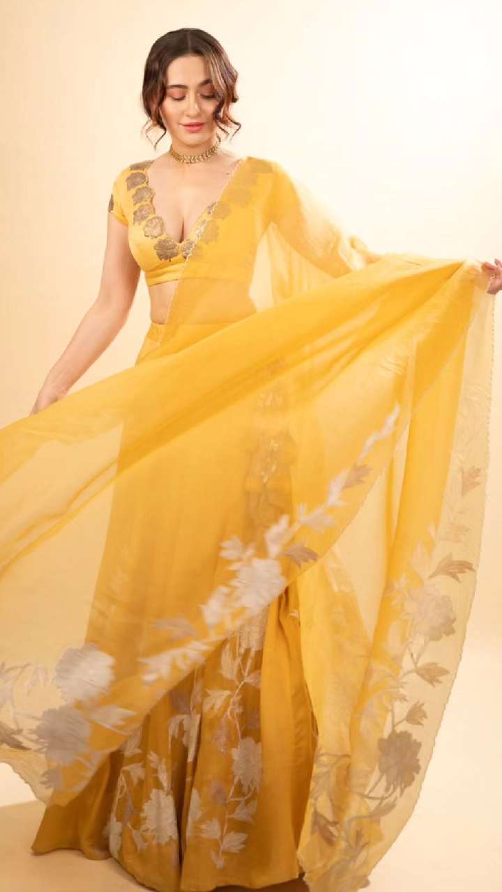 संजीदा शेख सोशल मीडिया पर काफी ज्यादा एक्टिव रहती हैं। हाल ही में एक्ट्रेस ने येलो कलर के लहंगे में अपना लुक शेयर किया। इसके साथ एक्ट्रेस ने डीप नेक ब्लाउज पेयर किया है।