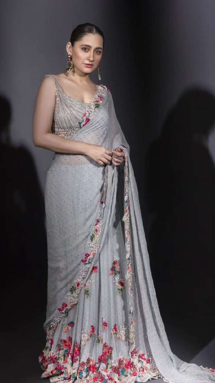 अगर आपके बाजू हैवी हैं तो आप फुल स्लीव्स ब्लाउज कैरी कर सकती हैं। संजीदा का ये लुक भी काफी शानदार लग रहा है।