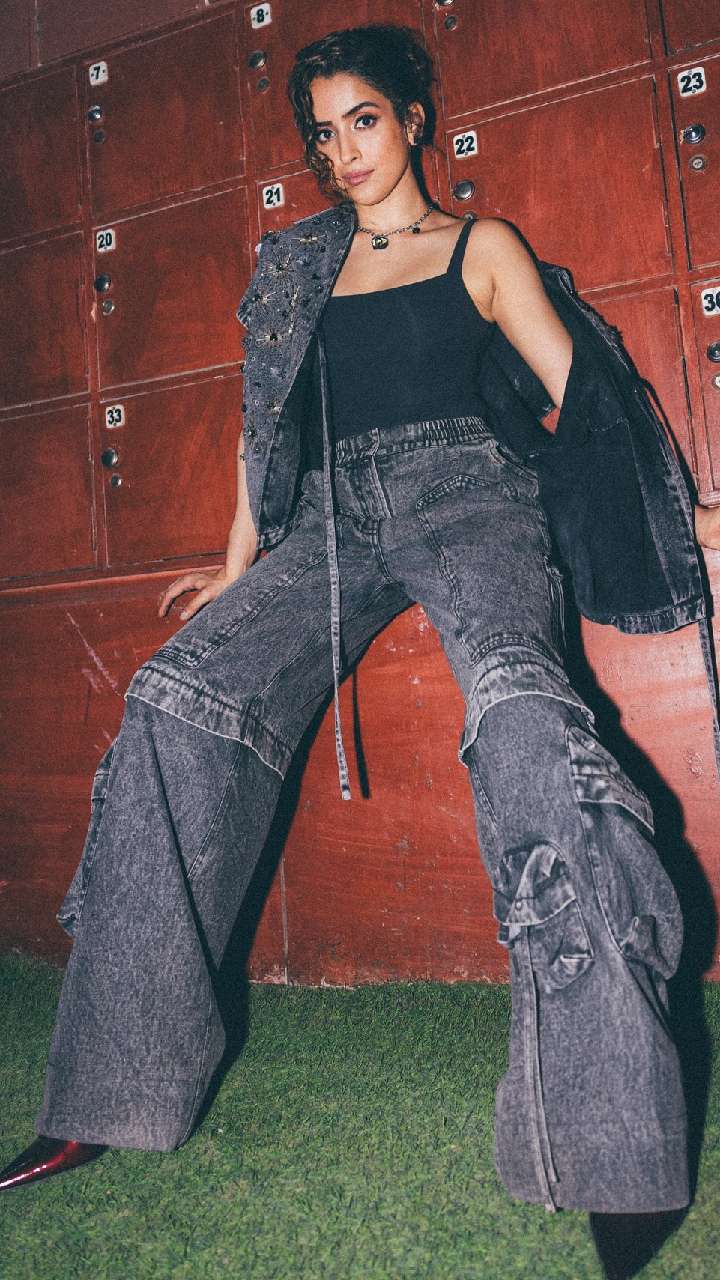 डेनिम जैकेट और पेंट के साथ एक्ट्रेस ने स्लीवलेस टॉप को कैरी किया है। आप कॉलेज में हॉट और बॉसी लुक कैरी करने के लिए इस आउटफिट को ट्राई कर सकती हैं।