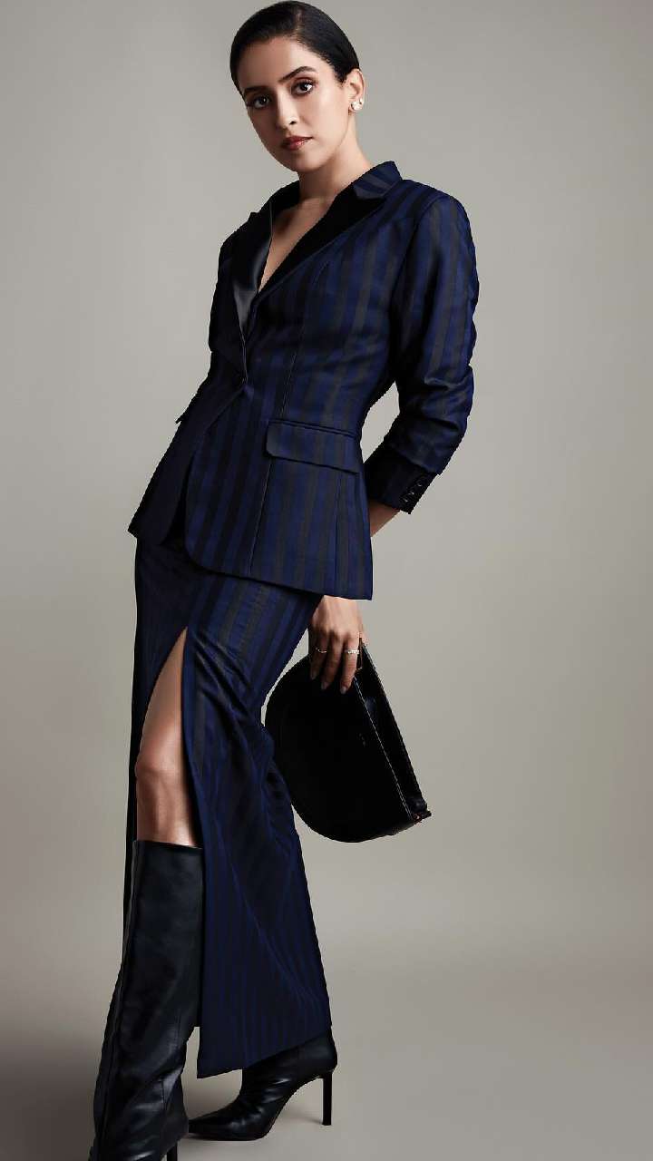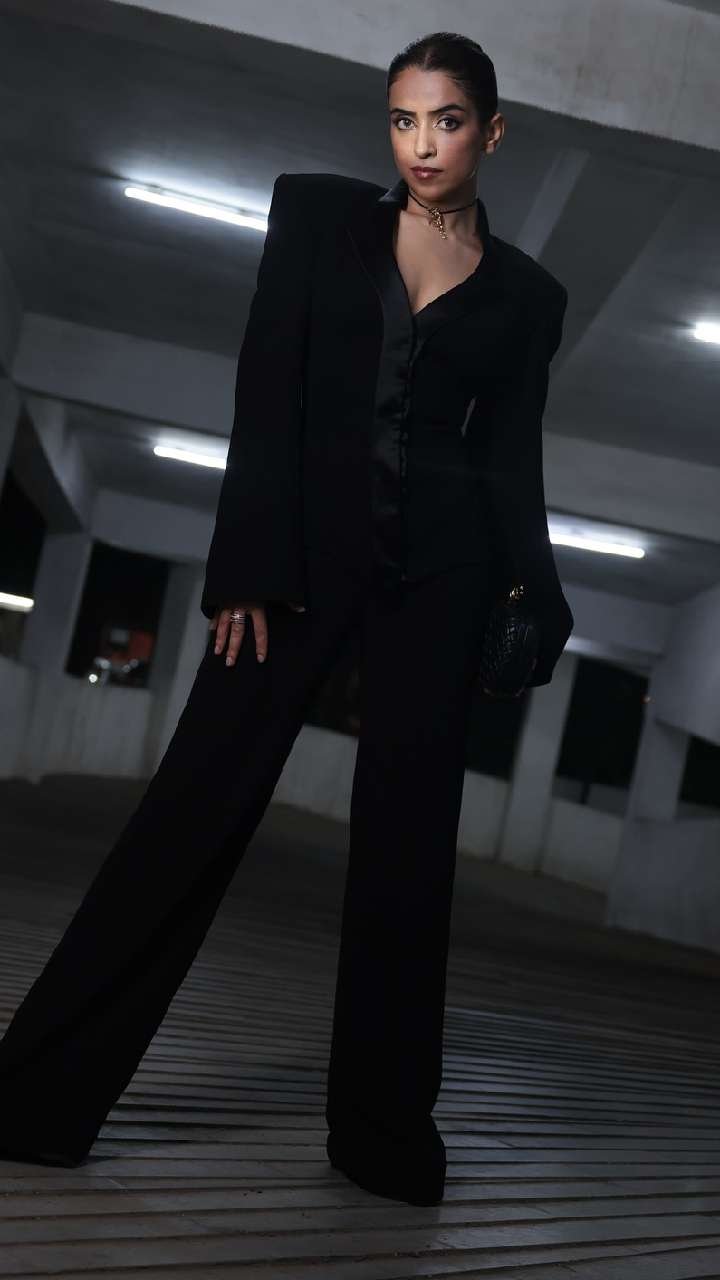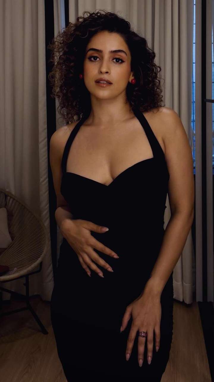 ऑल ब्लैक आउटफिट में एक्ट्रेस एकदम बॉसी लुक दे रही हैं। सान्या ने टाइट हेयर बन के साथ अपने लुक को अट्रैक्टिव बनाया हुआ है। ऑफिस में स्टाइलिश लुक लेने के लिए यह आउटफिट आपके लिए एकदम परफेक्ट है।