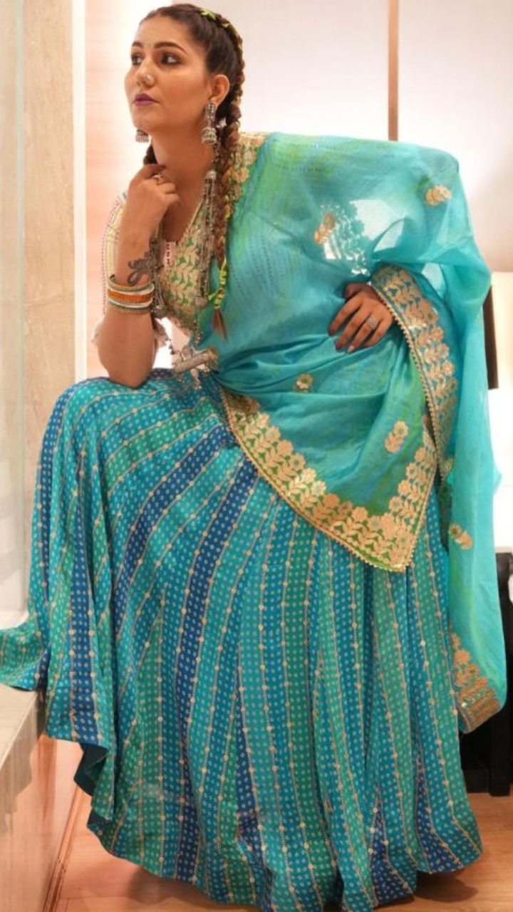 सपना चौधरी ने ब्लू कलर के लहंगे में तस्वीरें शेयर की हैं, जिसमें वह बेहद सुंदर दिख रही हैं।