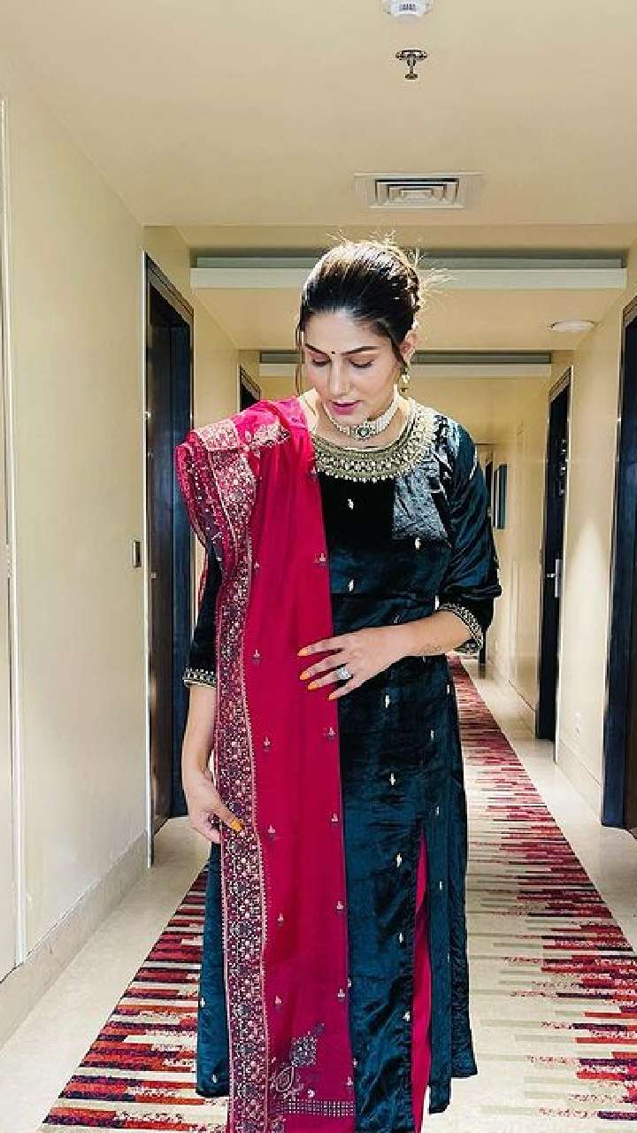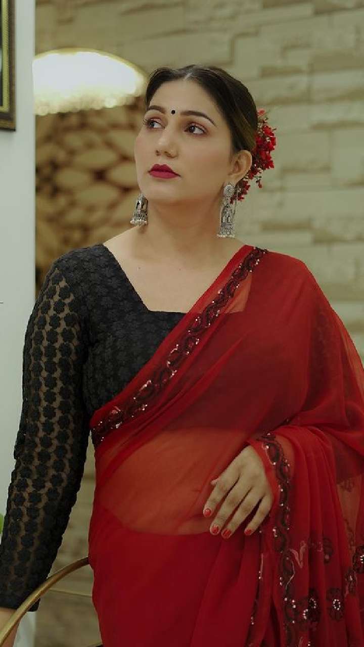 सपना चौधरी ज्यादातर साड़ी और सूट में ही दिखती है और इंडियन लुक में वो बहुत सुंदर लगती हैं।
