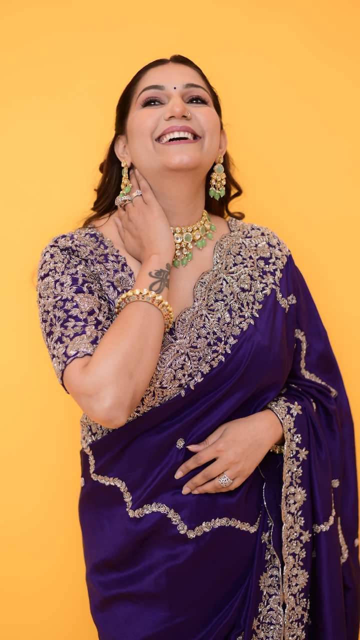 सपना चौधरी का ये साड़ी लुक काफी क्लासी लुक दे रहा है। आप भी इस तरह की एम्ब्रॉयडरी साड़ी को किसी खास मौके पर कैरी कर सकती हैं।