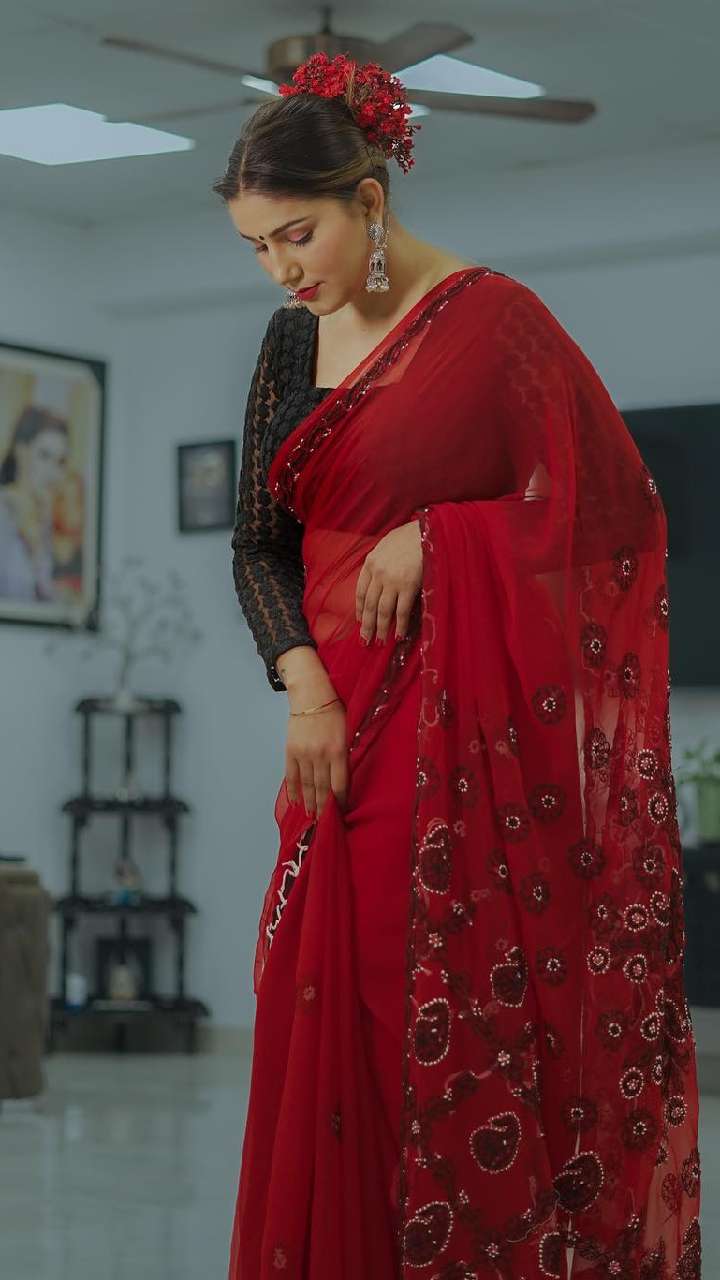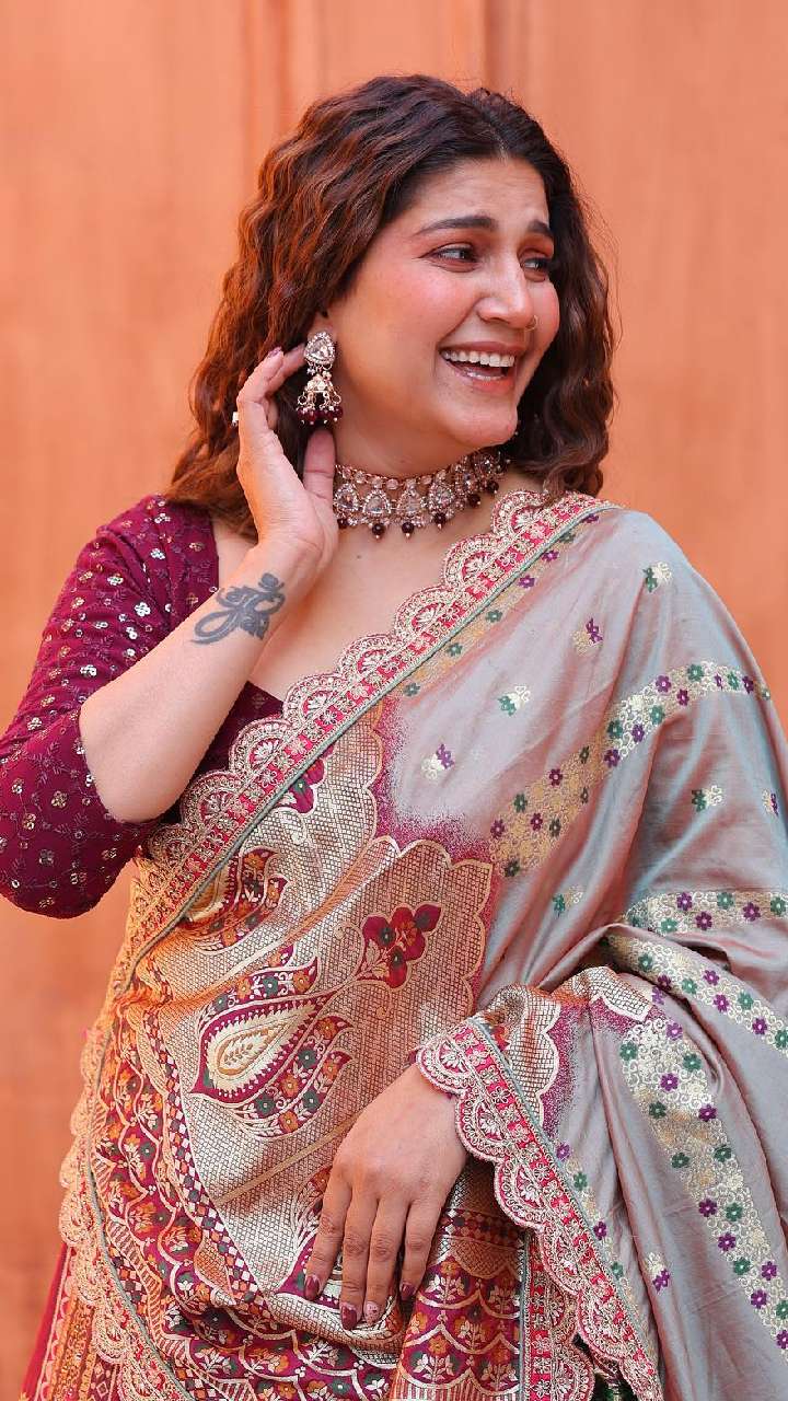 फिलहाल टिश्यू साड़ी काफी ज्यादा ट्रेंड में चल रहीं हैं आप भी ट्रेंड को फॉलो करते हुए इस तरह की टिश्यू साड़ी कैरी कर सकती हैं।