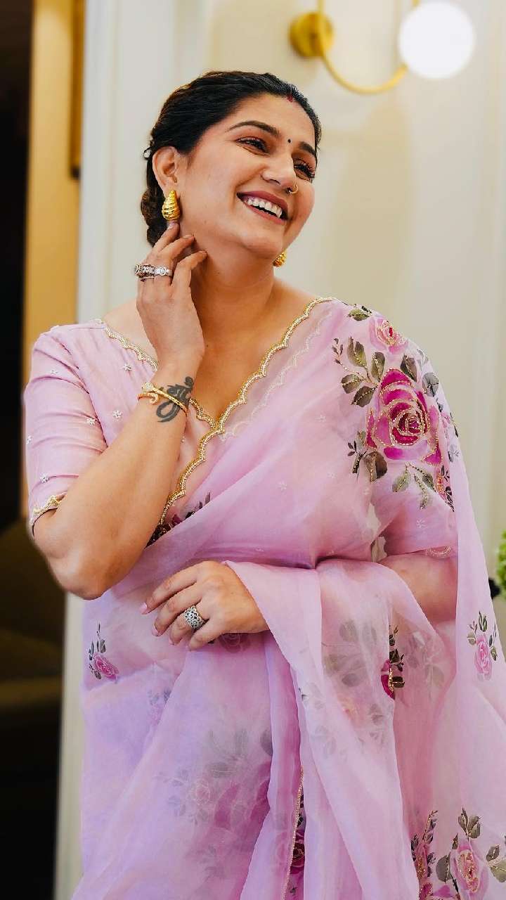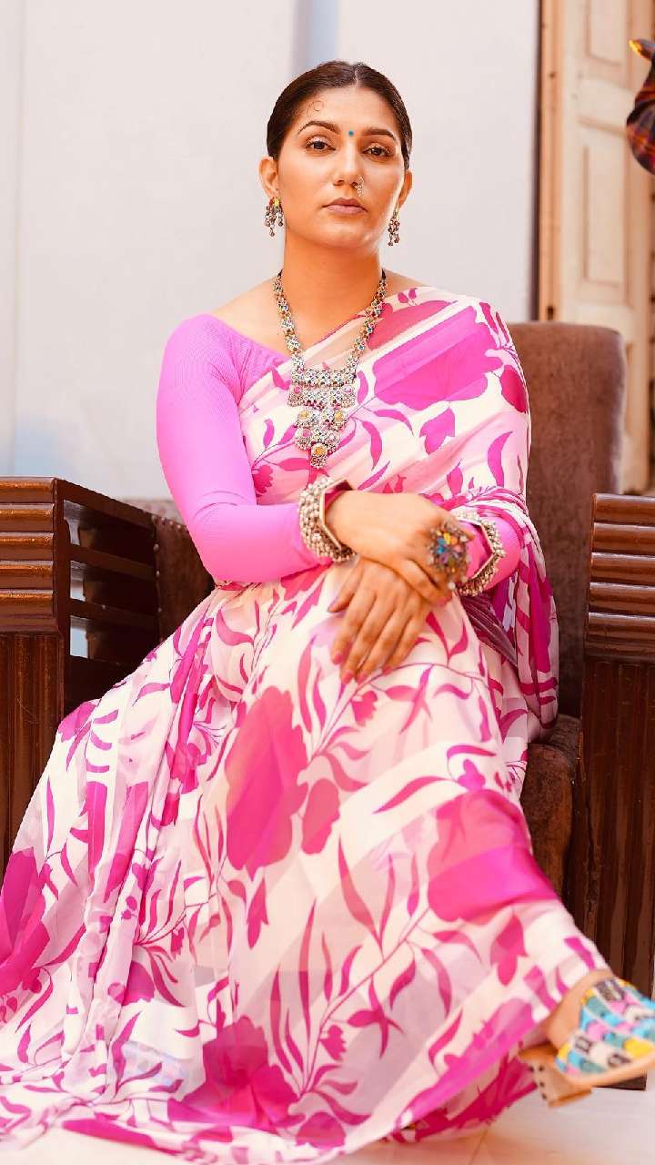 सपना चौधरी सोशल मीडिया पर भी काफी ज्यादा एक्टिव रहती हैं। हाल ही में एक्ट्रेस ने फ्लावर प्रिंटेड टिश्यू साड़ी में अपना लुक शेयर किया है।