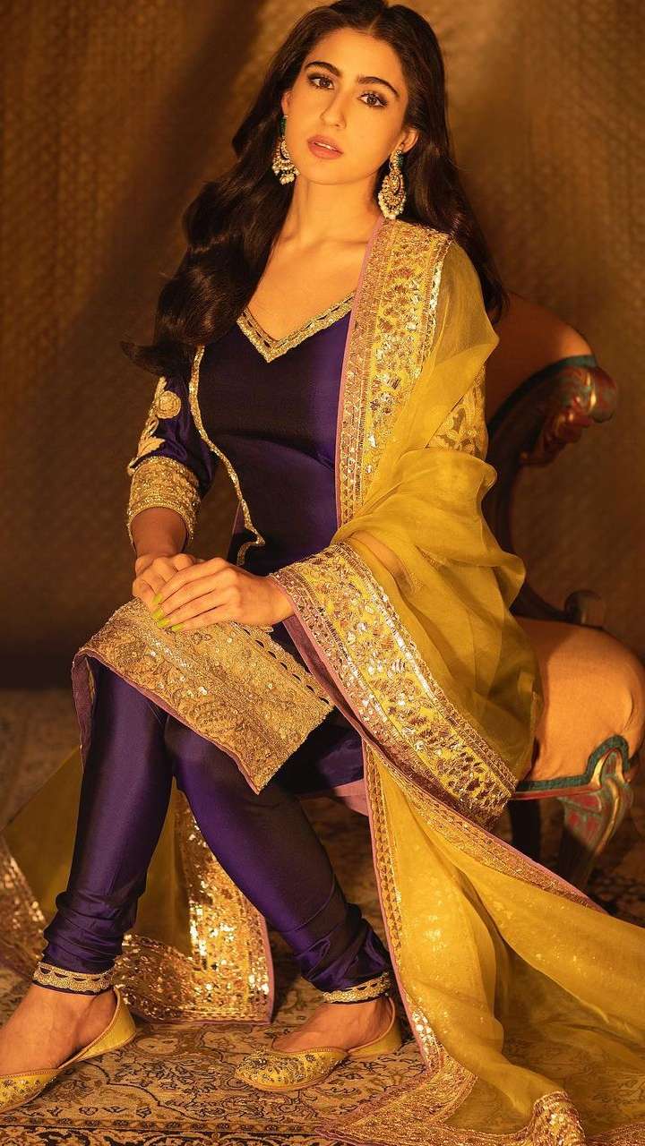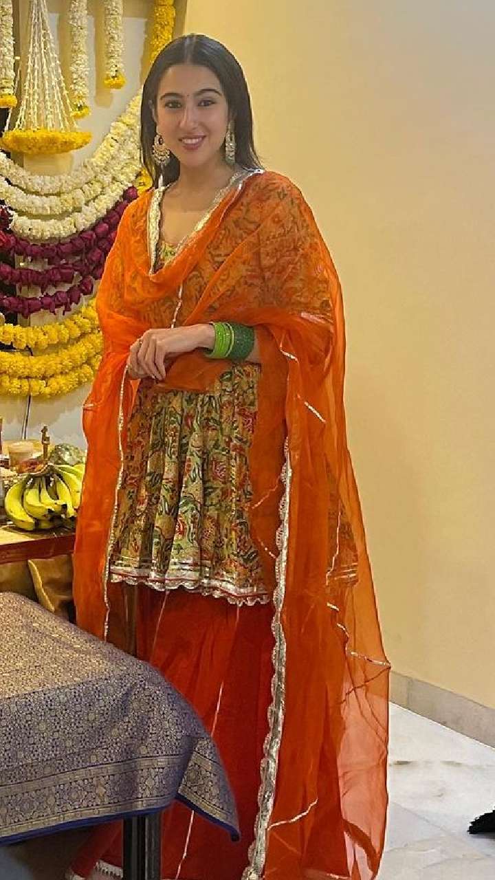 सारा का ये सिंपल शरारा सूट लुक भी काफी एलिगेंट लुक देगा।