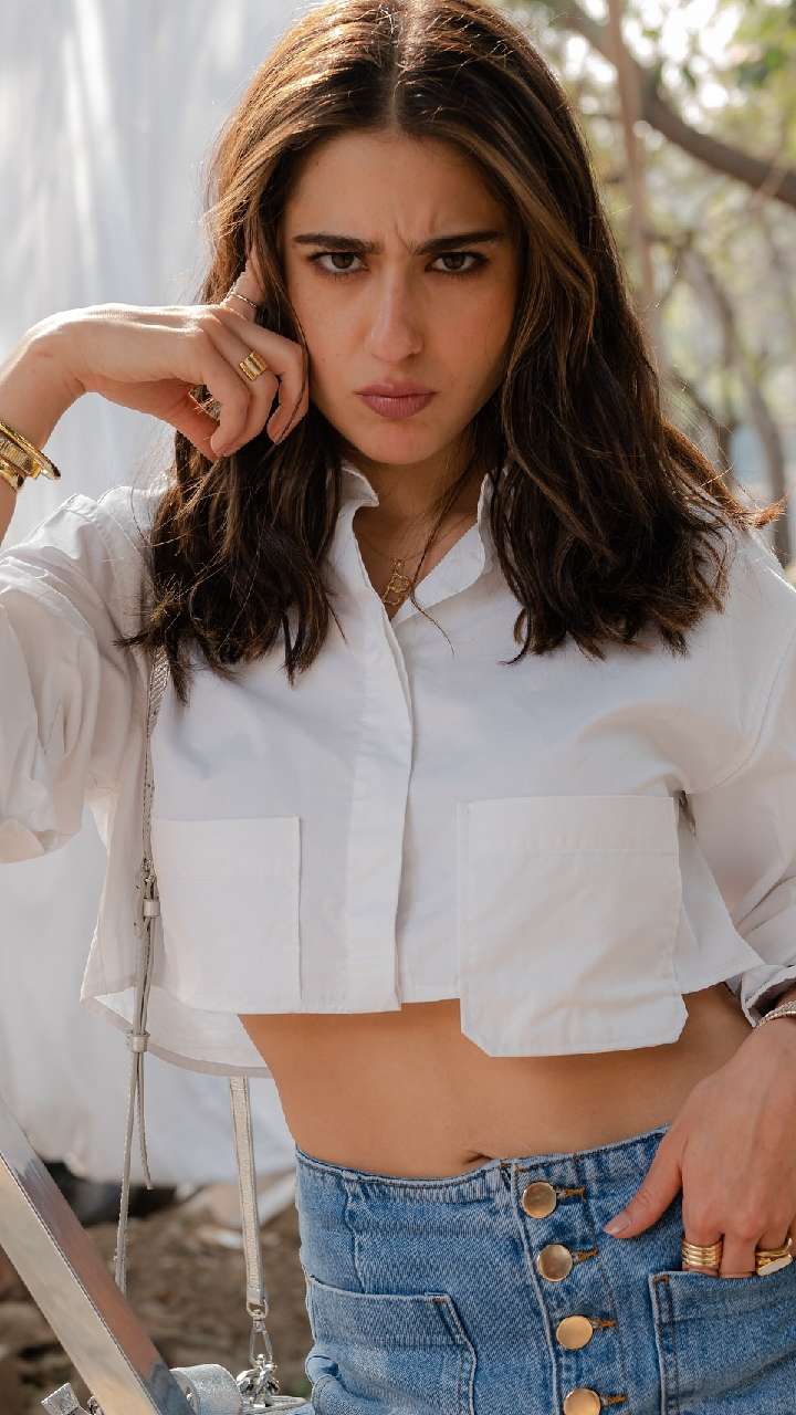 आप भी सारा अली खान की तरह ही क्रॉप शर्ट को डेनिम शॉर्ट्स या फिर स्कर्ट के साथ स्टाइल कर सकती हैं।