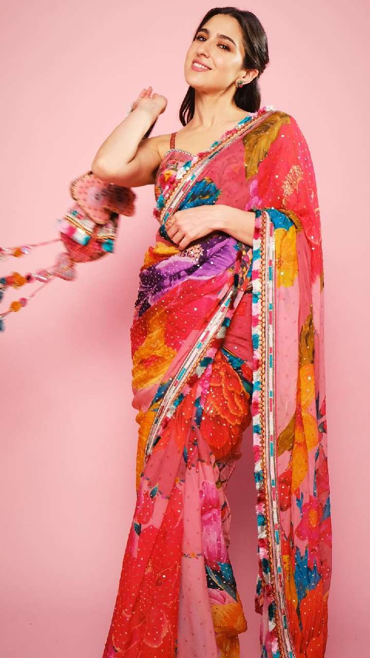 सारा अली खान की ये मल्टीकलर साड़ी भी काफी ज्यादा सुंदर लग रही है। आप भी इस समर ये मल्टी कलर साड़ी कैरी कर सकती हैं।