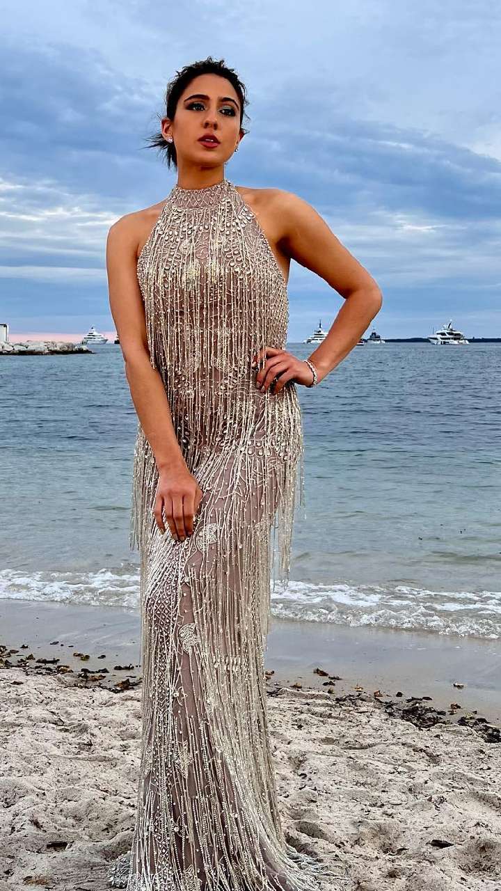 सिल्वर शिमरी लॉन्ग गाउन में सारा अली खान काफी ज्यादा खूबसूरत लग रहीं हैं। एक्ट्रेस का ये लुक फैंस को भी बहुत पसंद है।