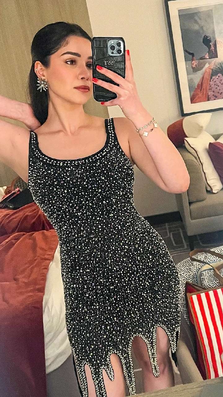 सारा तेंदुलकर ब्लैक कलर की सिल्वर वर्क शार्ट स्ट्रैपी ड्रेस में बेहद कातिलाना लग रही हैं। इस लुक में देख आपकी सहेलियां जल्द उठेंगी।