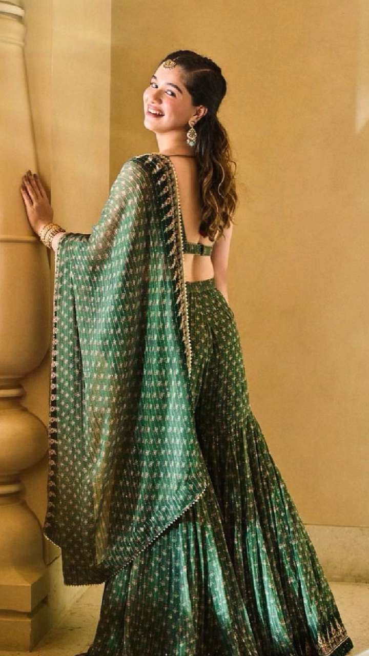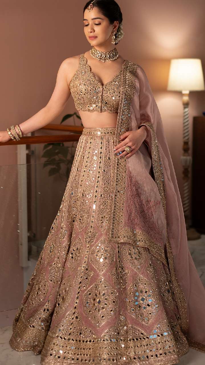 फिलहाल मिरर वर्क आउटफिट्स काफी ज्यादा ट्रेंड में चल रहे हैं। आप भी सारा तेंदुलकर की तरह ही मिरर वर्क लहंगा पहन सकती हैं।