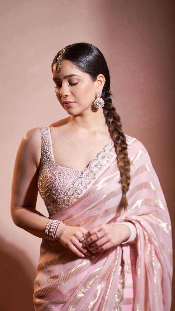 ब्लैक लवर्स के लिए सारा तेंदुलकर का ये लुक परफेक्ट है। ब्लैक शिमरी साड़ी में सारा बहुत प्यारी लग रही हैं।