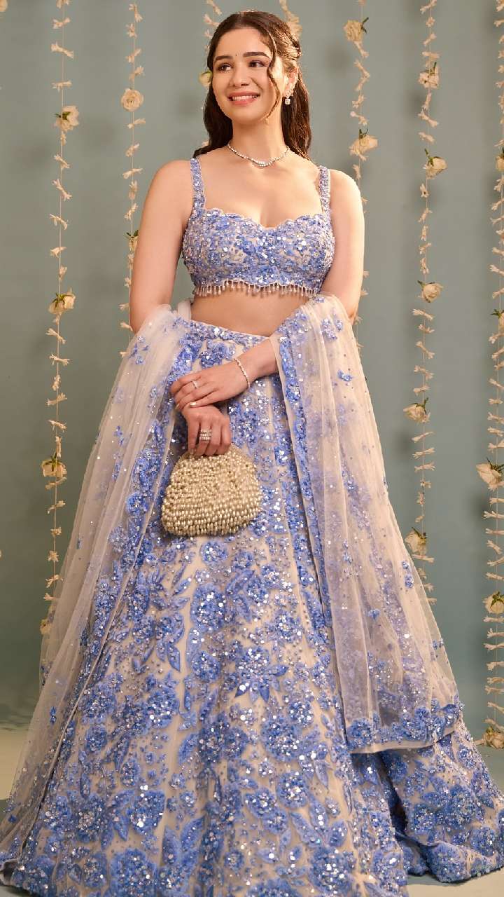 आप चाहें तो सारा तेंदुलकर की तरह ही नेट एम्ब्रॉयडरी वाला लहंगा स्टाइल कर सकती हैं। ब्लू और व्हाइट लहंगे में सारा कमाल लग रही हैं।