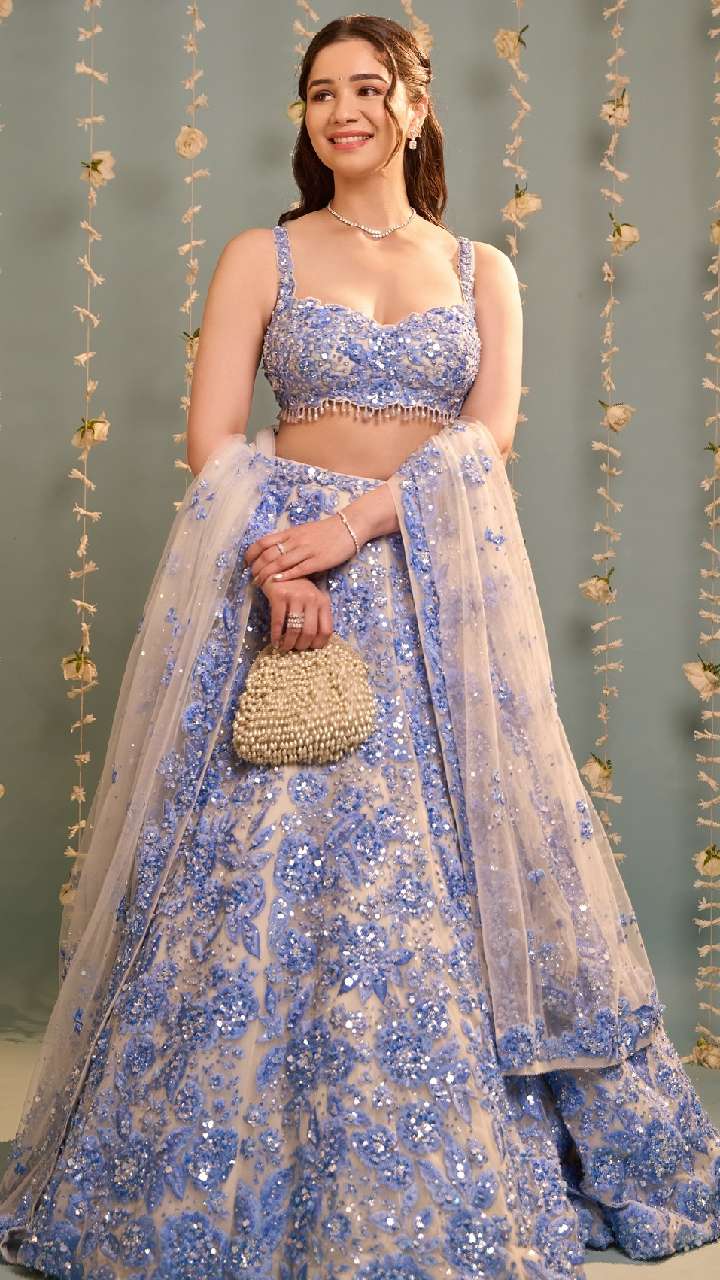 सारा ब्लू कलर के हैवी एंब्रॉयडरी लहंगा में अप्सरा जैसी लग रही हैं। अगर आपके घर की शादी है, तो ऐसे लहंगा को पहनकर जलवा बिखेर सकती हैं।