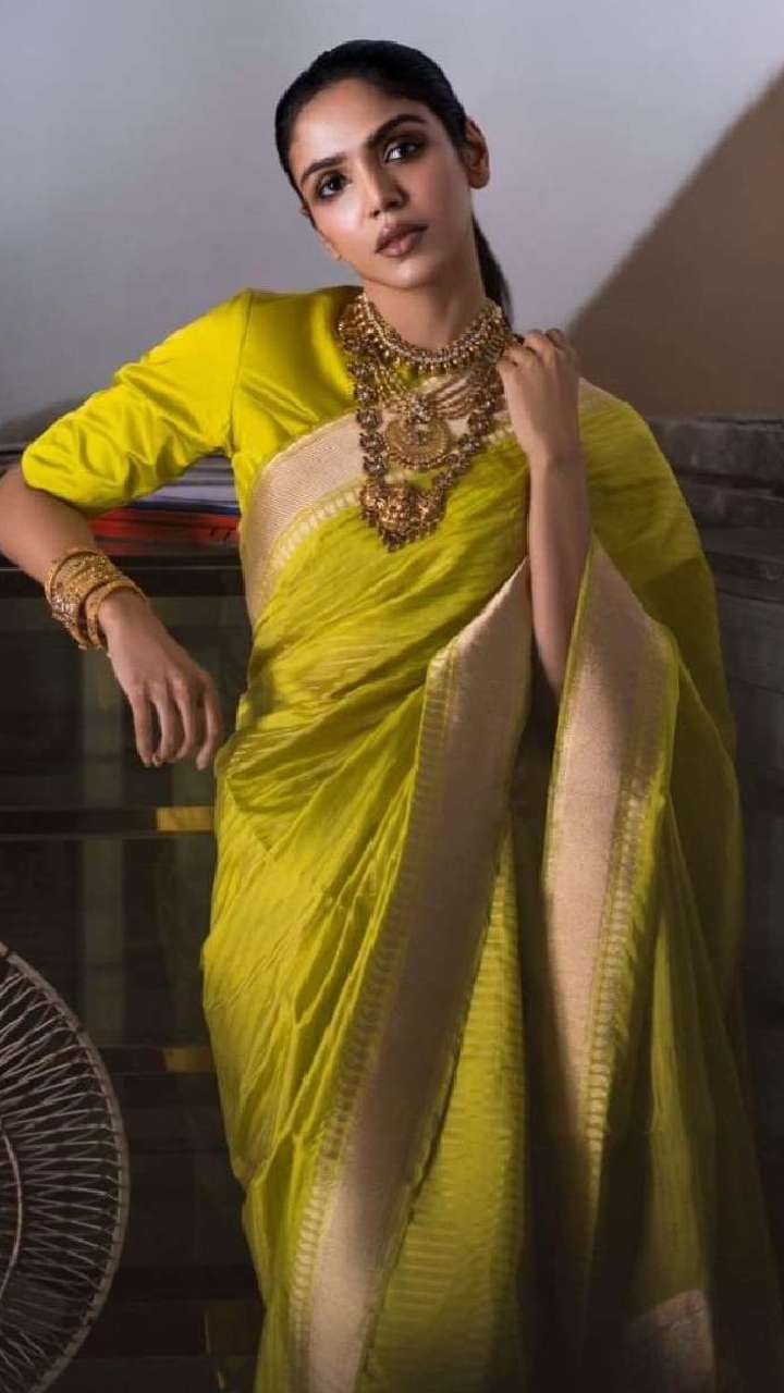 नई नवेली दुल्हन नवरात्रि में खूबसूरत और रॉयल लुक के लिए एक्ट्रेस की साड़ी से इंस्पायर हो सकती हैं। माता रानी को लाल रंग के साथ पीला कलर भी काफी प्रिय होता है।