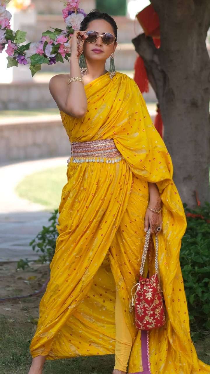 आजकल इंडो वेस्टर्न साड़ियां काफी ट्रेंड में हैं। अगर आपको भी शादी में मॉर्डन लुक पाना चाहती हैं, तो सरगुन के इस लुक को कॉपी करना न भूलें।