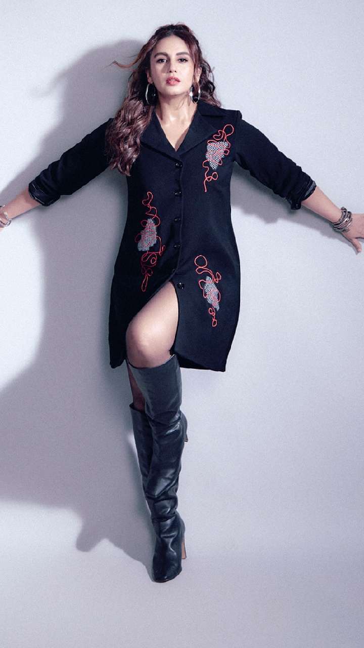 एक्ट्रेस इस ब्लैक कलर की स्लिट ड्रेस में बेहद खूबसूरत लग रही हैं। साथ ही, लॉन्ग कोट लुक में चार चांद लगा रहा है।
