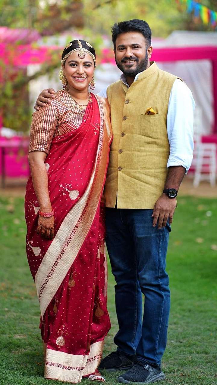 अपनी शादी में स्वरा फहद ने बेहद सिंपल लुक कैरी किया था। एक्ट्रेस ने रेड कलर की सिल्क साड़ी तो उनके हसबैंड ने जींस शर्ट और नेहरू जैकिट पहनी थी।