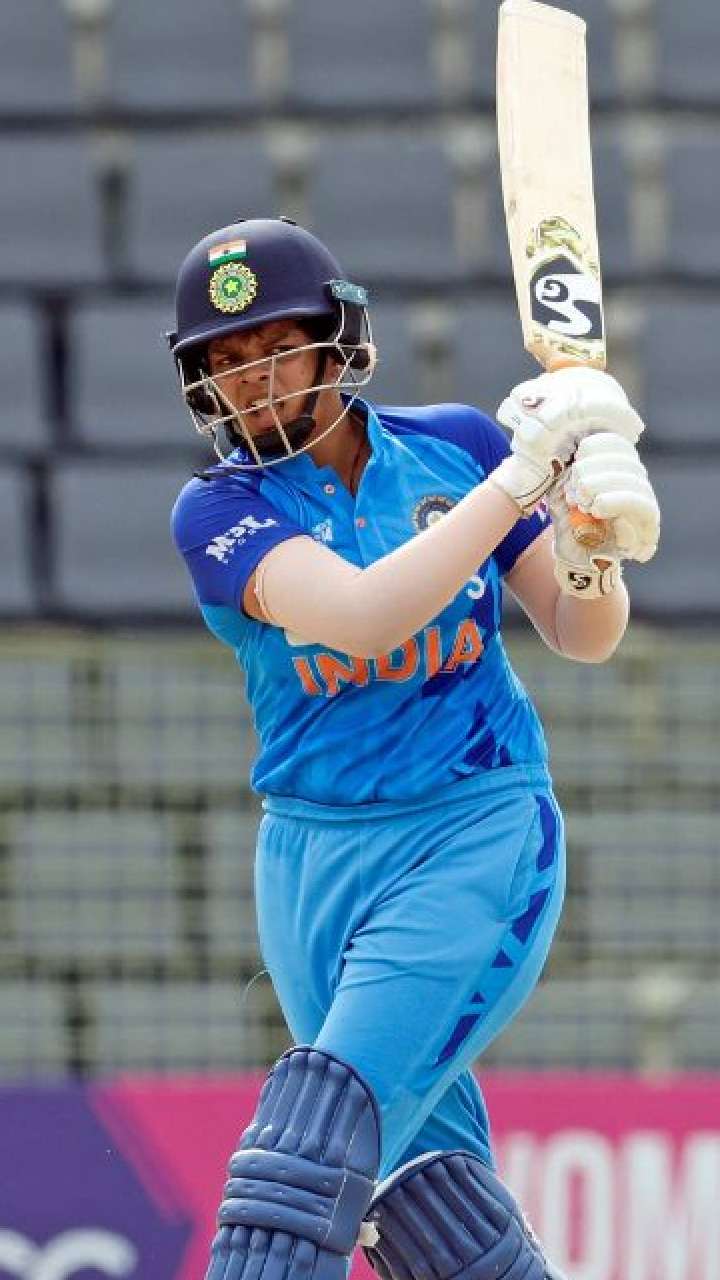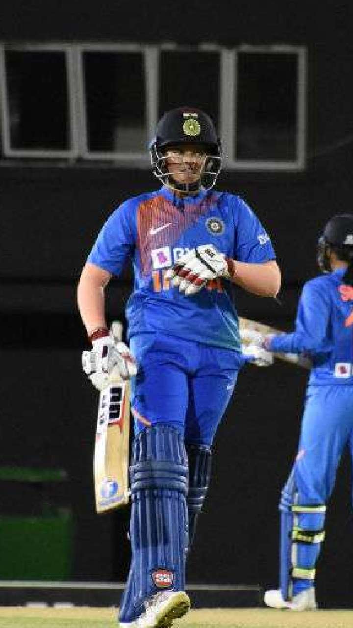 जिसका पीछा करते हु शेफाली ने पारी के छठे ओवर में थाबिसेंग निनी की गेंद पर शानदार बल्लेबाजी की।