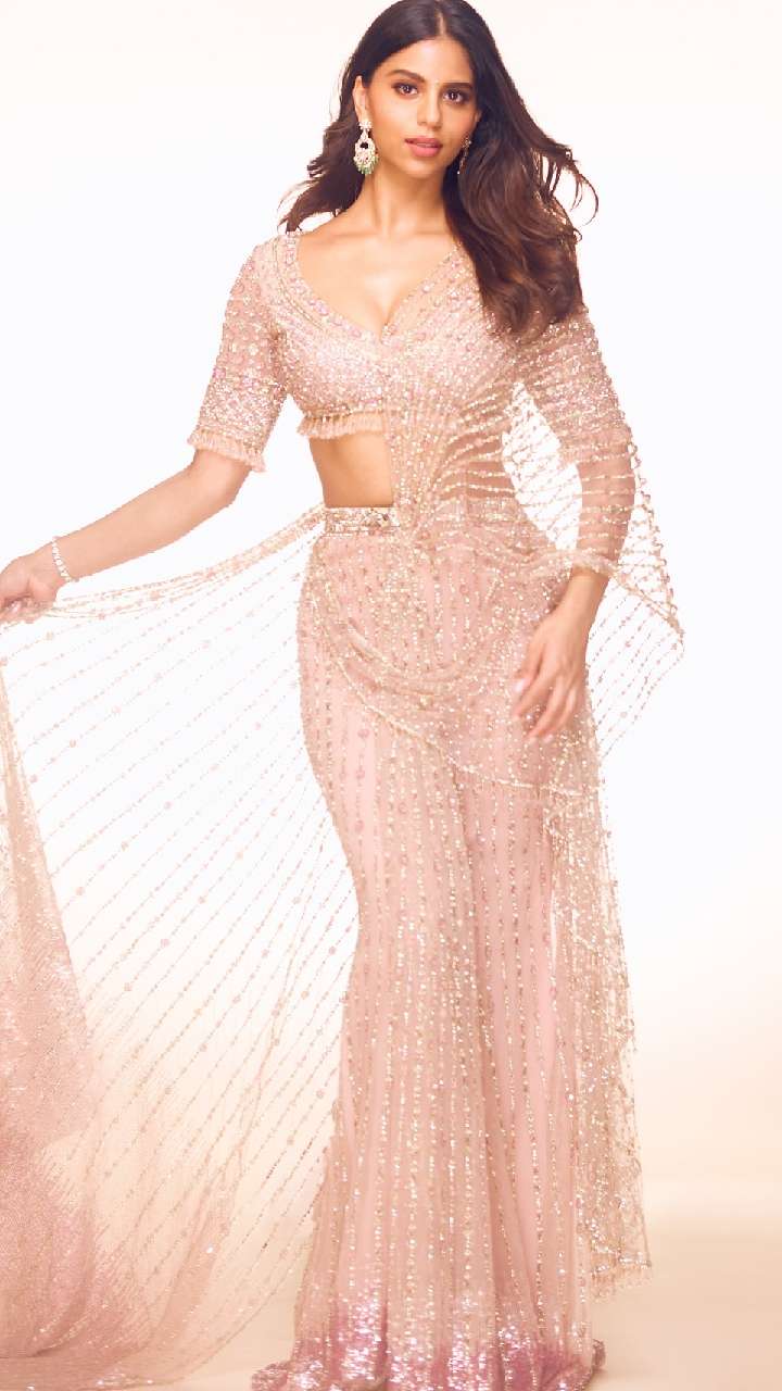 अगर आप किसी खास मौके के लिए साड़ी की तलाश में हैं, तो सुहाना खान की तरह ही शिमरी साड़ी ट्राई करें।