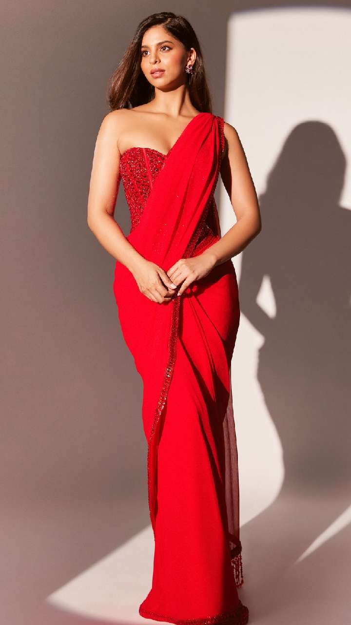 हॉट रेड कलर की बॉडीकॉन ड्रेस में सुहाना काफी ग्लैमरस दिखाई दे रही हैं। ऐसी ड्रेस को यंग गर्ल्स पार्टी और डेट के लिए परफेक्ट है।