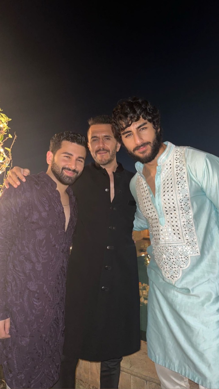 स्टार किड इब्राहिम अली भी प्रोड्यूसर अमृतलाल बिंद्रा की पार्टी में ट्रेडिशनल लुक में पहुचे।