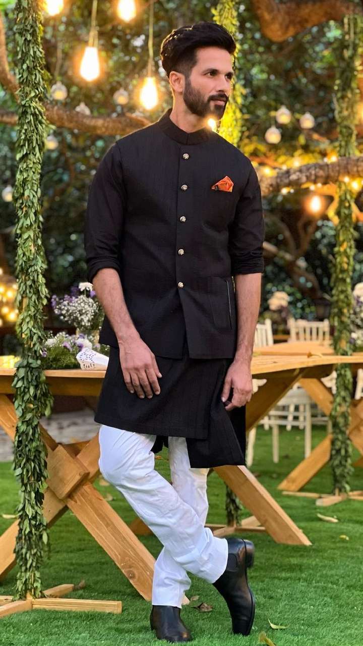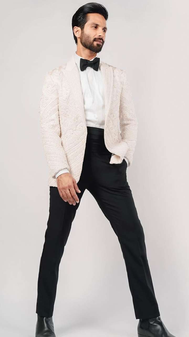 एक्टर का ये ब्लैक इन व्हाइट इंडो वेस्टर्न लुक वेडिंग फंक्शन के लिए बेस्ट रहेगा।