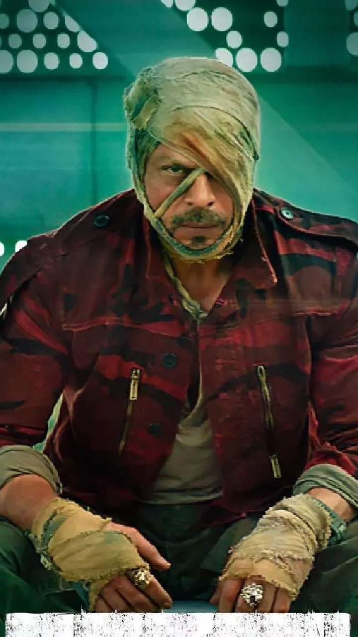 जवान का एक लुक है जिसमें एक्टर शाहरुख खान के पूरे चेहरे पर पट्टी बंधी हुई है। इसके अलावा भी इस फिल्म में एक्टर के कई सारे लुक हैं।