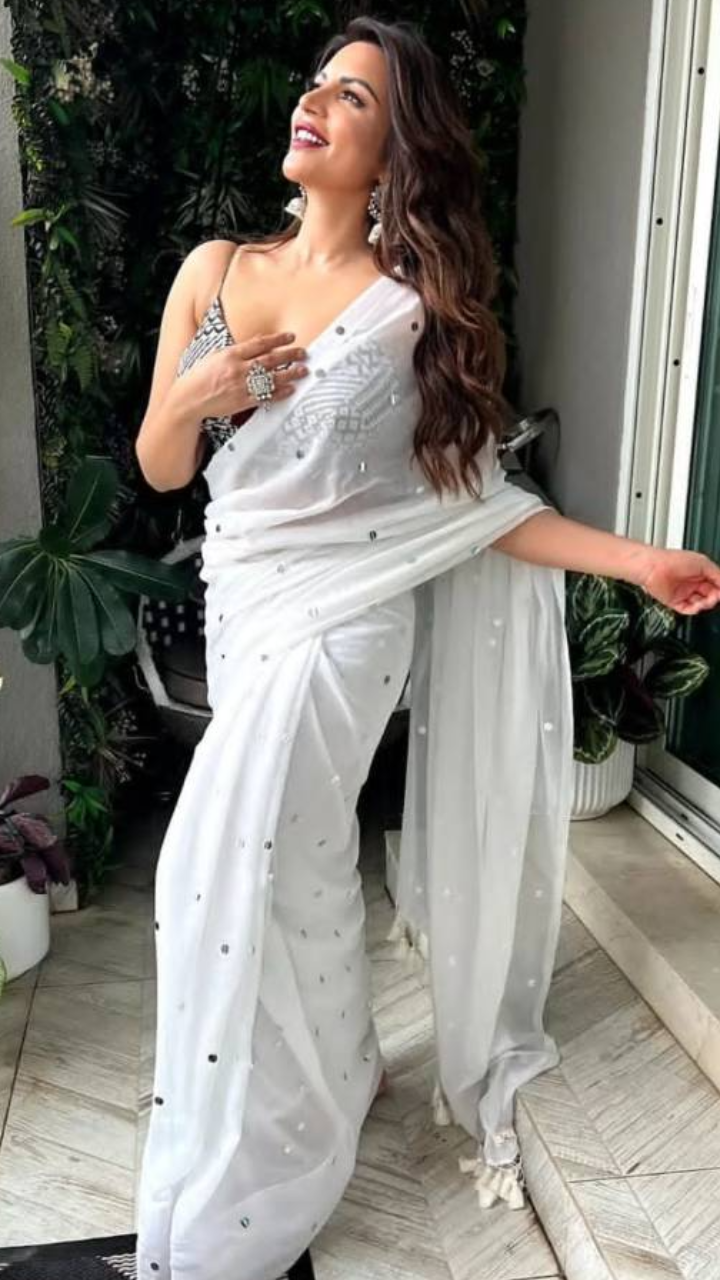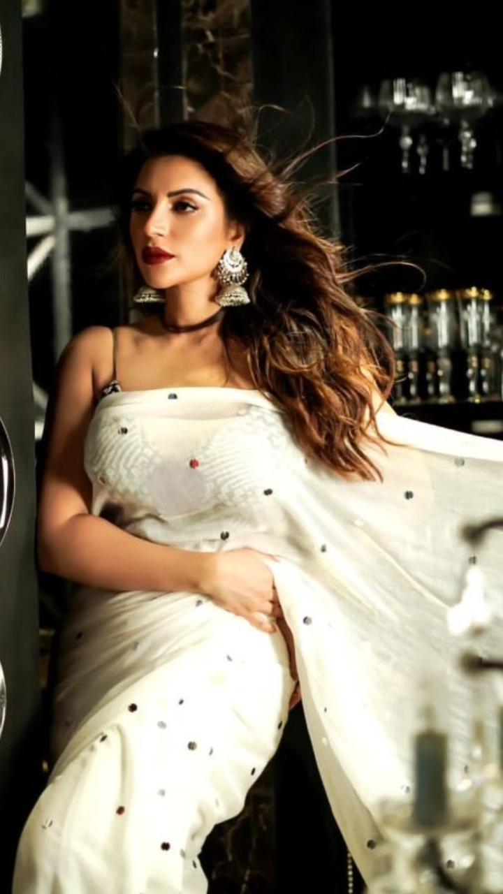 शमा सिकंदर इस सिंपल सोबर व्हाइट साड़ी में भी हॉट अदाओं से फैंस के दिलों को घायल कर रही हैं।