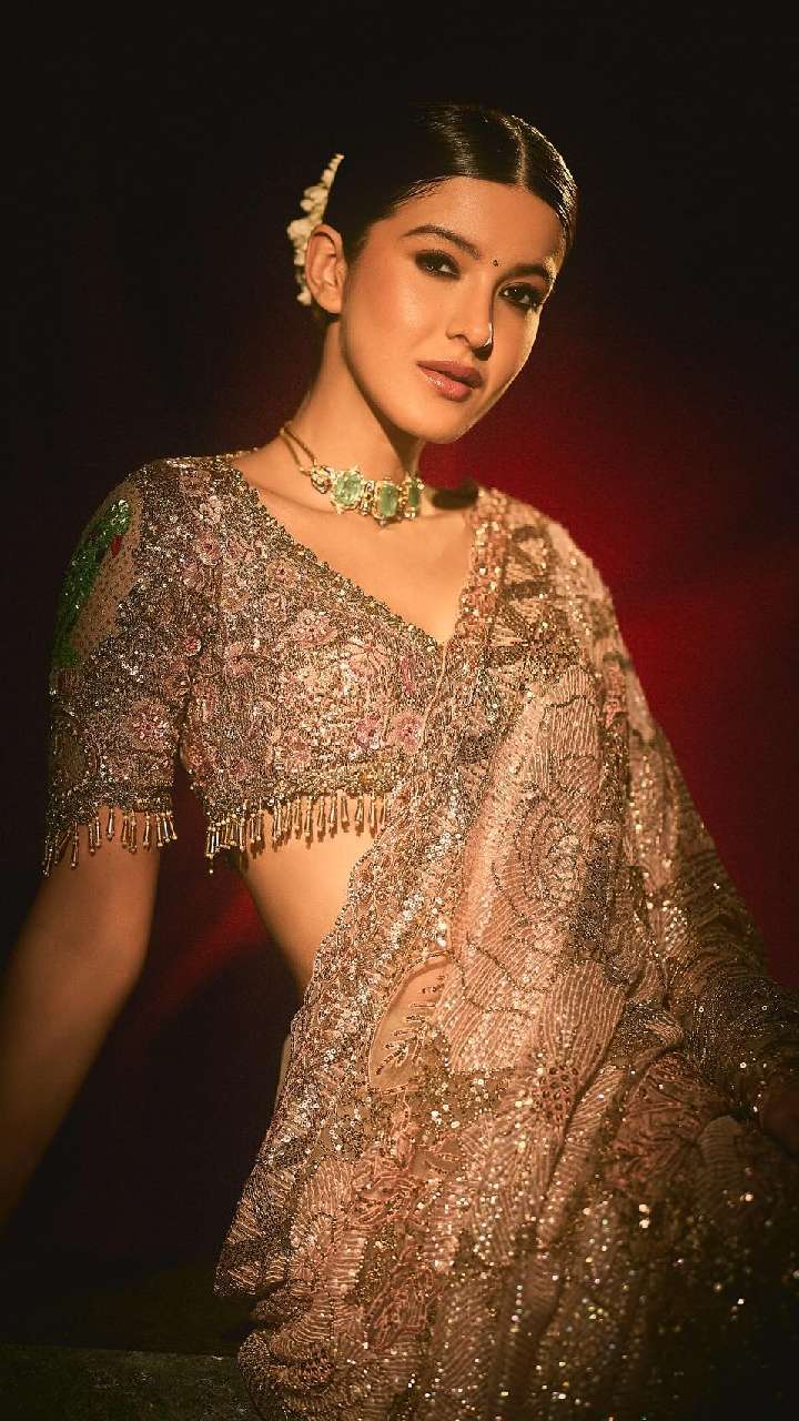 अगर आपको हैवी वर्क कैरी करना पसंद है तो आप शनाया कपूर के इस लुक को कैरी कर सकती हैं।