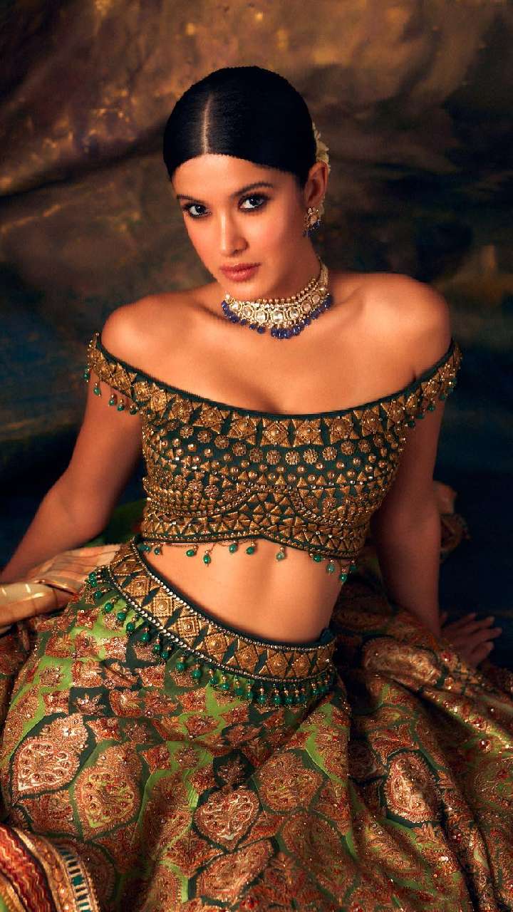 अभिनेत्री का फ्लोरल प्रिंट लहंगे के साथ डीप वी नेक ब्लाउज लुक काफी गॉर्जियस लग रहा है। वेडिंग सीजन के लिए ये डिजाइन बेस्ट रहेगा।