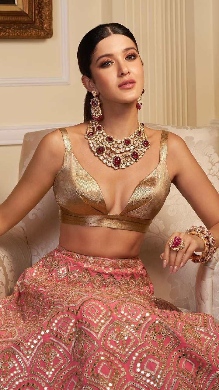इस मल्टीस्टोन कट स्लीव्स स्वीट हार्ट चोली में एक्ट्रेस काफी ग्लैमरस लग रही हैं। लहंगे के साथ इस तरह के डिजाइन बेस्ट रहते हैं।
