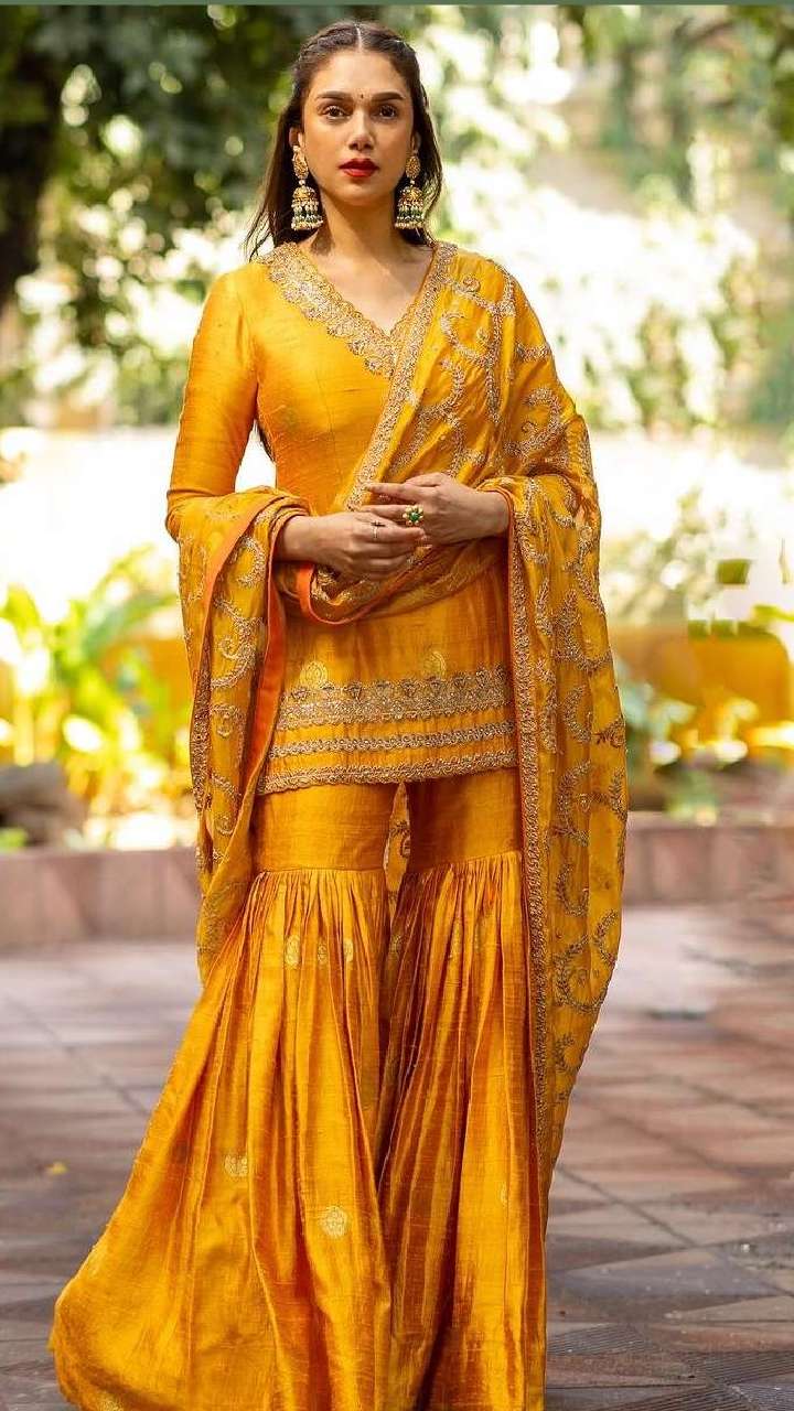 Eid पर पहनने के लिए आप एक्ट्रेस के शरारा सूट्स से इंस्पिरेशन ले सकती हैँ। फैशन से जुड़ी हर अपडेट के लिए देखते रहें JAGRAN.COM के साथ। Image Credit: Instagram (@aditiraohydari)