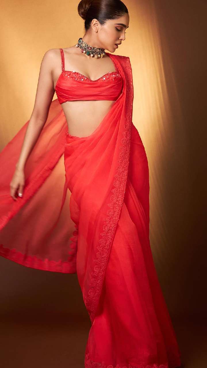 आप शरवरी के इस सिंगल स्ट्रैप ब्लाउज डिजाइन को भी कॉपी कर सकती हैं। एक्ट्रेस का ये लुक भी शानदार लग रहा है।