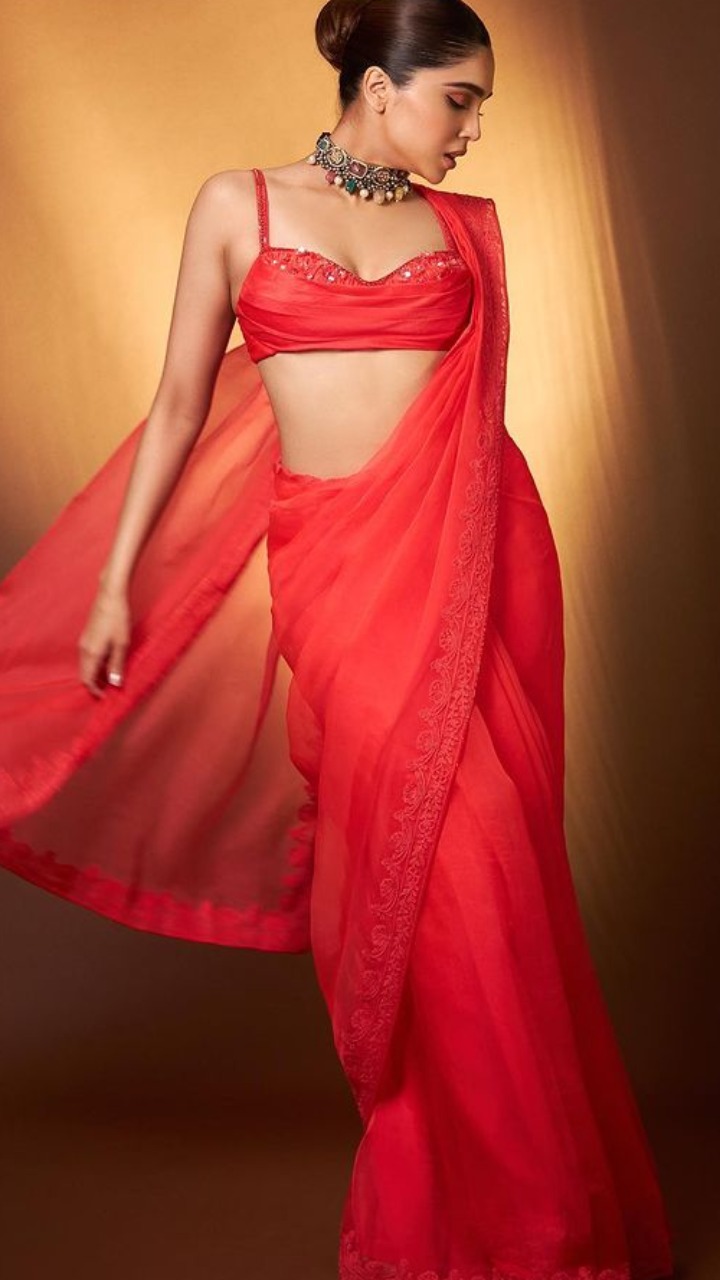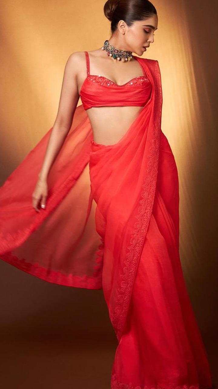 लेटेस्ट पोस्ट में एक्ट्रेस ने रेड कलर की नेट की साड़ी कैरी की हुई है। फोटो के कैप्शन में हैप्पी दिवाली भी लिखा।