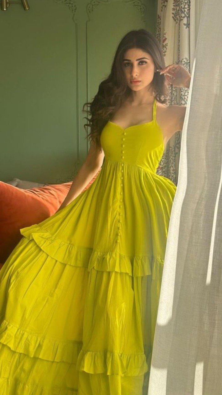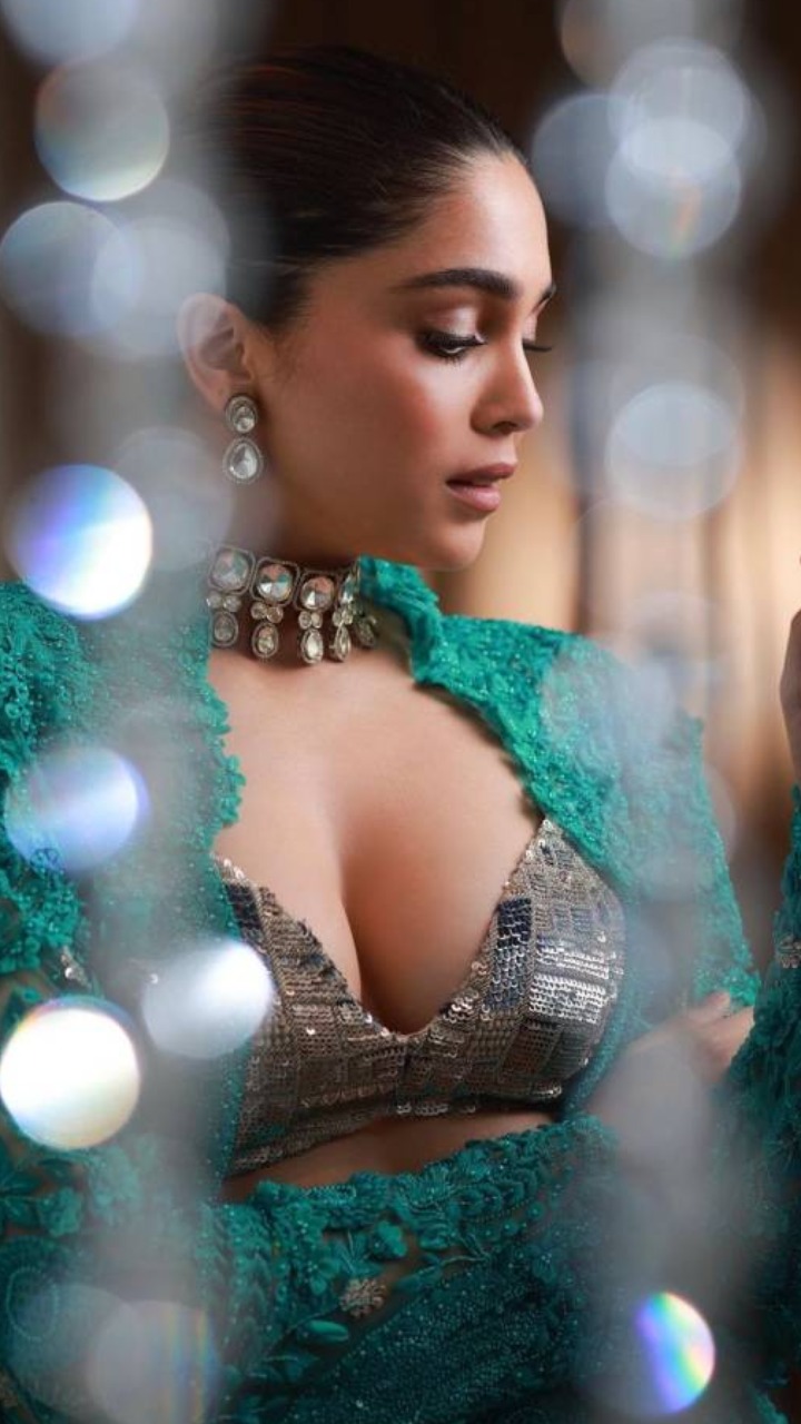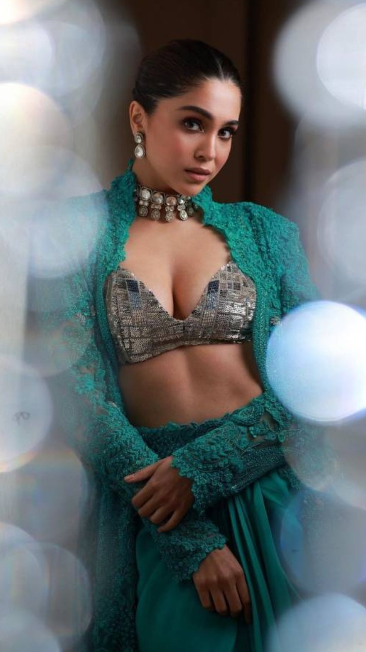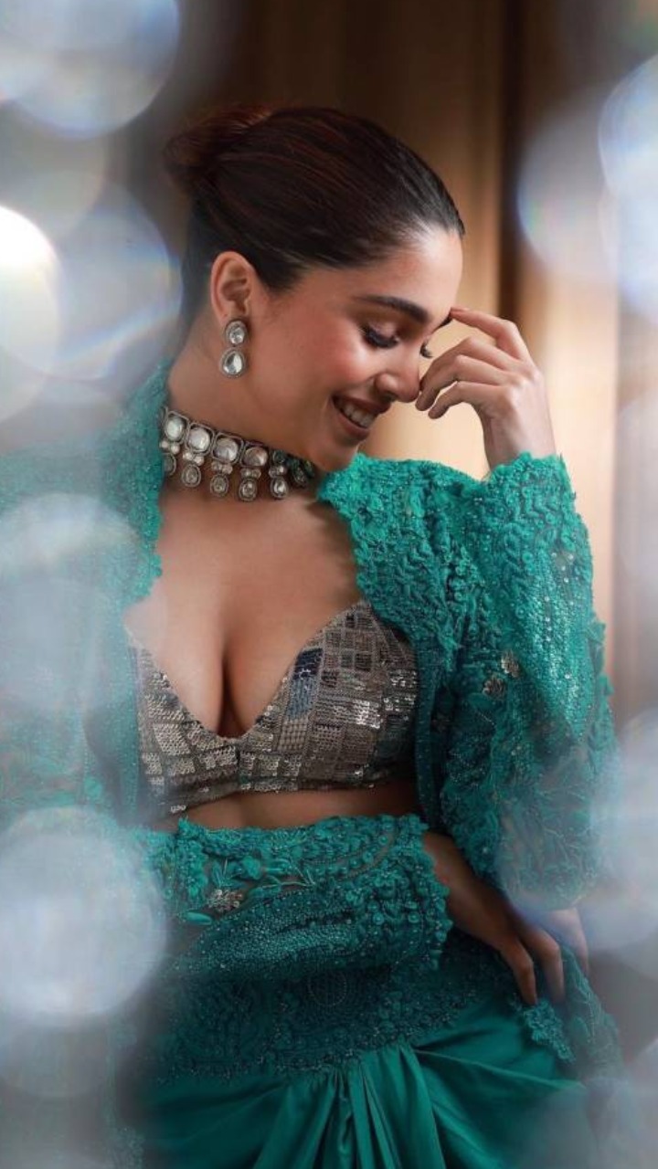 एक्ट्रेस ने पिकॉक ग्रीन और सिल्वर कलर की ड्रेस कैरी की हुई हैं और साथ में सिल्वर ज्वैलरी भी पहनी है।