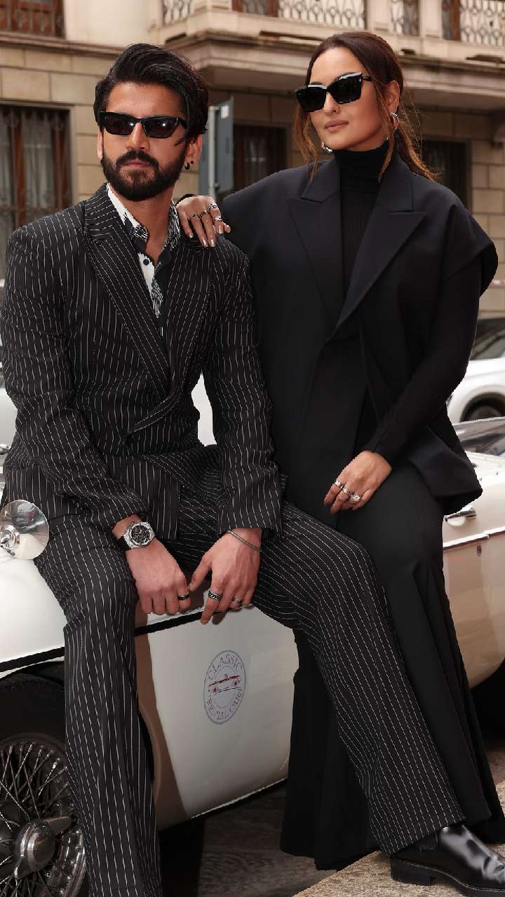 सोनाक्षी सिन्हा और उनके पति ब्लैक कलर के कपड़ो में बहुत ही स्टाइलिश और स्टनिंग लग रहे हैं। दोनों की जोड़ी किसी से कम नहीं है।