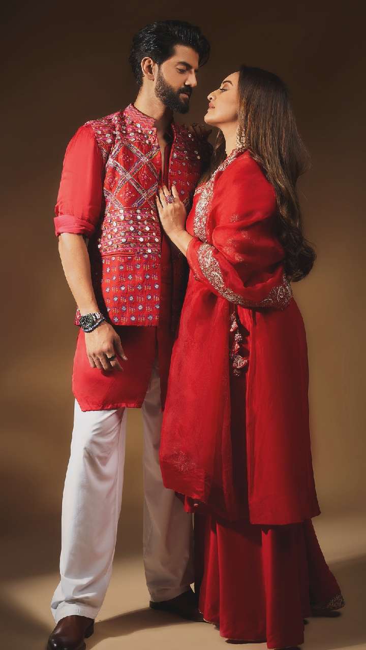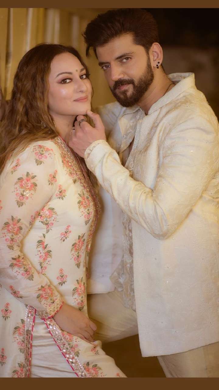 इस फोटो में जहीर और सोनाक्षी दोनों ने मैचिंग कलर पहन है, जिसमें दोनों की जोड़ी काफी सुंदर लग रही है। एक्ट्रेस ने सूट कैरी किया है और जहीर ने कुर्ता पजामा में हैंडसम लग रहे हैं।