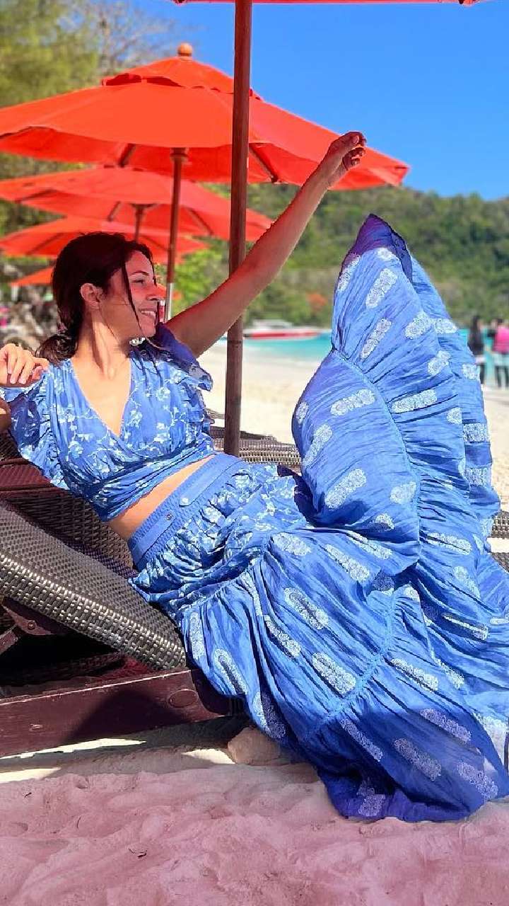 शहनाज बीच किनारे ब्लू कलर की प्रिंटेड फ्लेयर स्कर्ट फ्रिल क्रॉप टॉप में काफी कूल अंदाज में नजर आ रही हैं। आप भी इससे टिप्स ले सकती हैं।