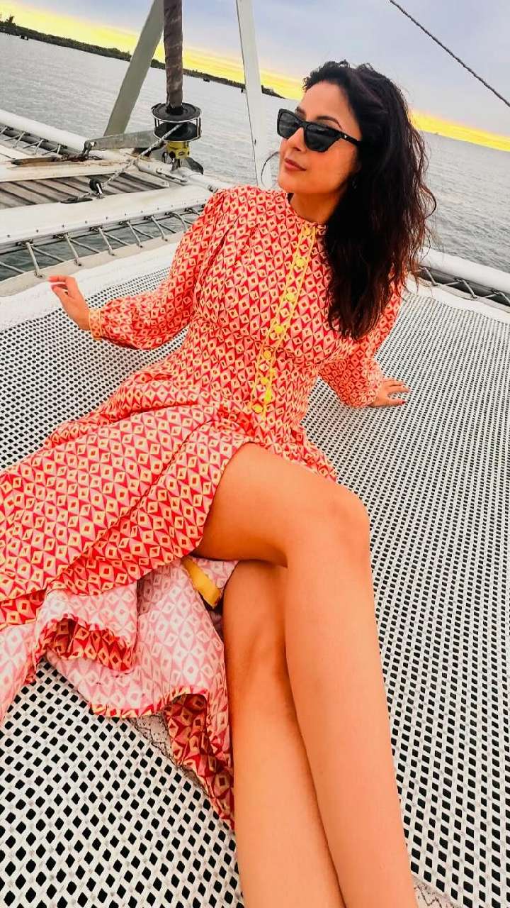 शहनाज गिल मस्टर्ड कलर के ऑफ शोल्डर जंपसूट में अपने ग्लैमरस अंदाज से फैंस जो दीवाना बना रही हैं। ये आपके वेकेशन लुक में जान डाल देगा।