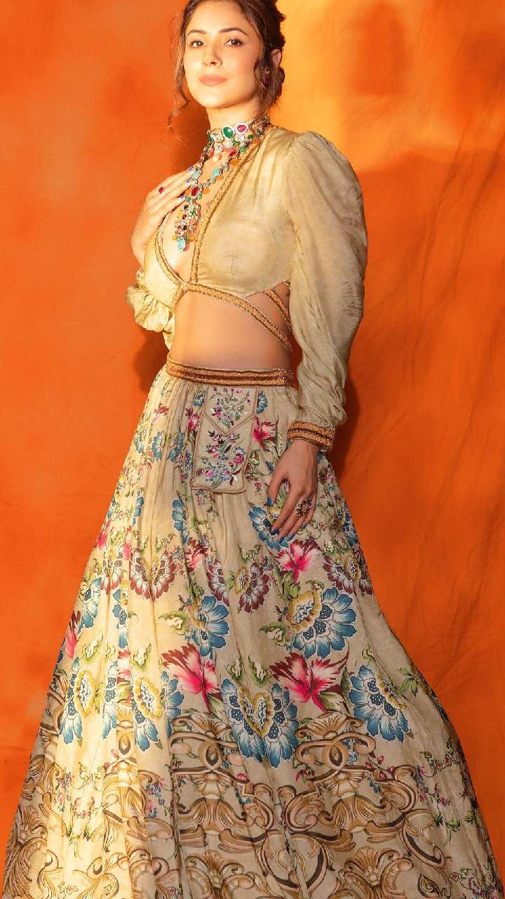 शहनाज गिल के पास हर आउटफिट का शानदार कलेक्शन है। इस मल्टी कलर लहंगे का साथ एक्ट्रेस की डिफरेंट स्टाइल चोली कैरी की है।