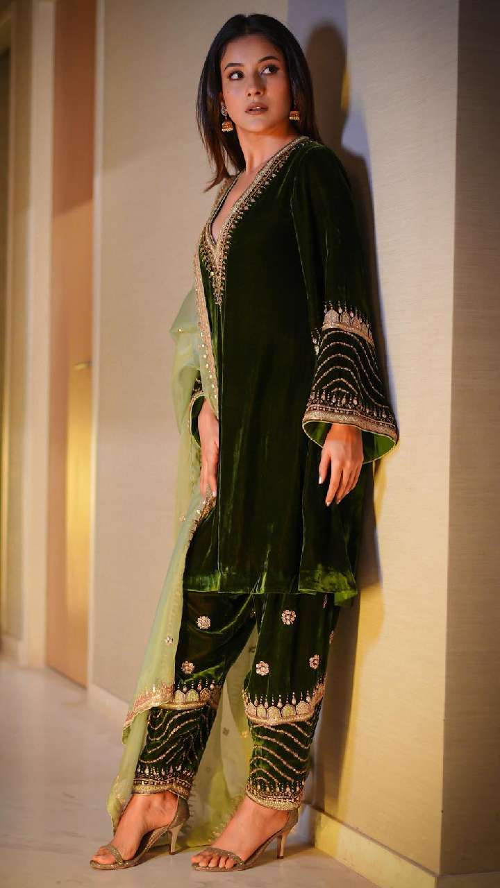 हाल ही में शहनाज गिल ने अपना लेटेस्ट लुक शेयर किया है। ग्रीन कलर के वेलवेट सूट में शहनाज का लुक शानदार लग रहा है।