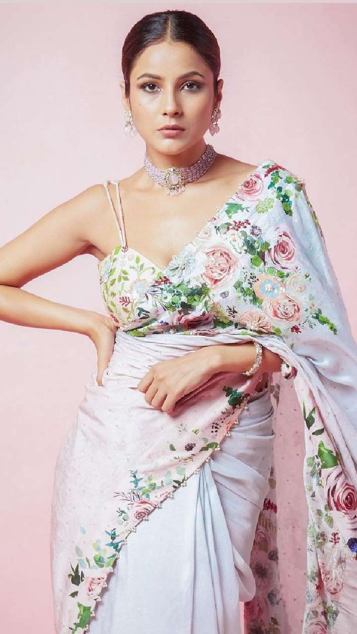 शहनाज अपनी इन तस्वीरों साड़ी पहने बेहद स्लेंइग अदाएं देती नजर आ रही है।