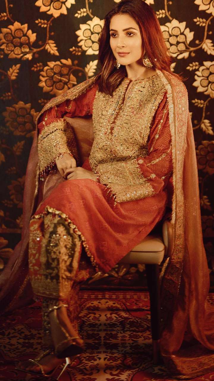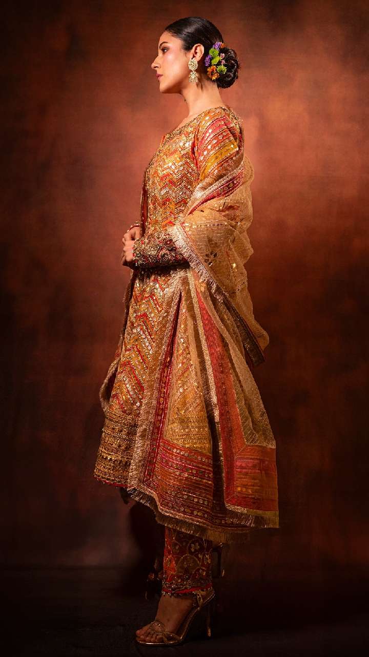 हाल में डीवा ने गोल्डन कलर के हैवी वर्क सूट में अपना लेटेस्ट लुक शेयर किया है। सूट पर गोल्डन रेड और येलो टच के साथ सितारों का वर्क किया गया है।