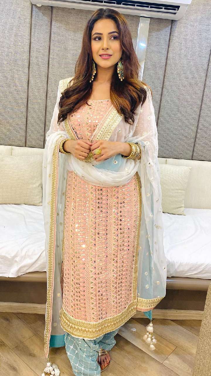 आज हम आपको शहनाज गिल के ग्रेसफुल सूट दिखाने जा रहे हैं। जिनको पहनकर आप पंजाबी वेडिंग में एकदम पटोला नजर आएंगी।