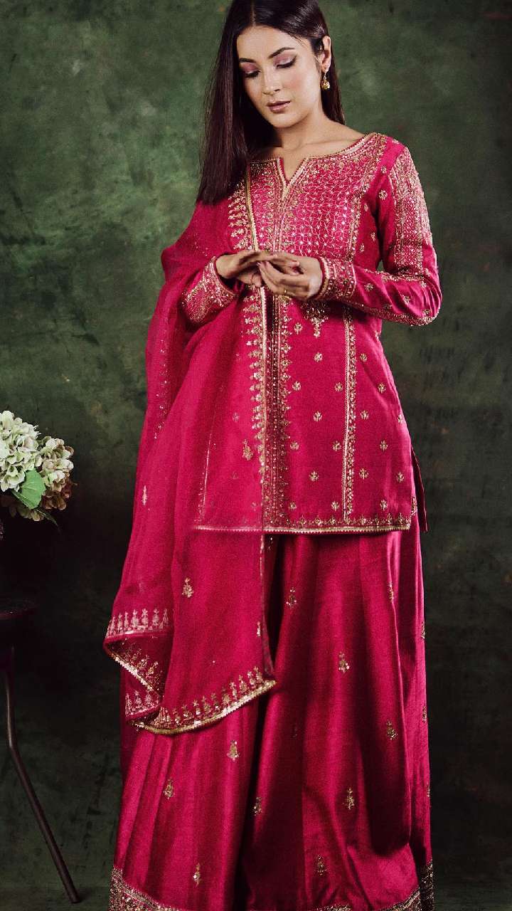 आप पंजाबी वेडिंग में शहनाज की तरह कॉटन सिल्क जरी वर्क वाले शरारा सूट में पहनकर एकदम पटोला नजर आएंगी। ऐसे सूट हर मौके पर स्टनिंग लुक देते हैं।