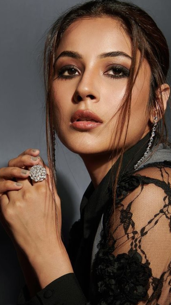 शहनाज का मेकअप उनके लुक में चार चाँद लगा रहा है। साथ ही उनकी स्मोकी आईज उनके लुक को और अट्रैक्टिव बना रही है।