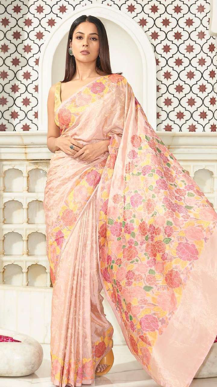 शहनाज ने शिमर गोल्ड प्री-स्टिचड साड़ी पहनी है। इसका पल्लू रफल स्टाइल है। वहीं, उनका चौड़े स्ट्रैप वाला गोल्डेन ब्लाउज खूबसूरती पर चार चांद लगा रहा है। आप भी इस तरह की साड़ी कैरी कर सकती हैं।