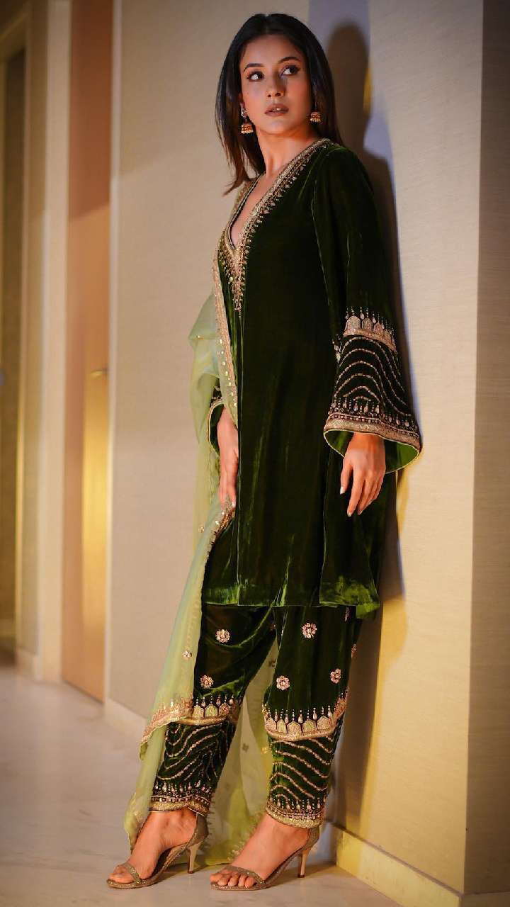 अगर आप रॉयल और क्लासी लुक चाहती हैं, तो शहनाज गिल के इस लुक को रीक्रिएट कर सकती हैं। जरदोजी वर्क वाला ये कुर्ता सेट हर फंक्शन के लिए बेस्ट ऑप्शन होता है।