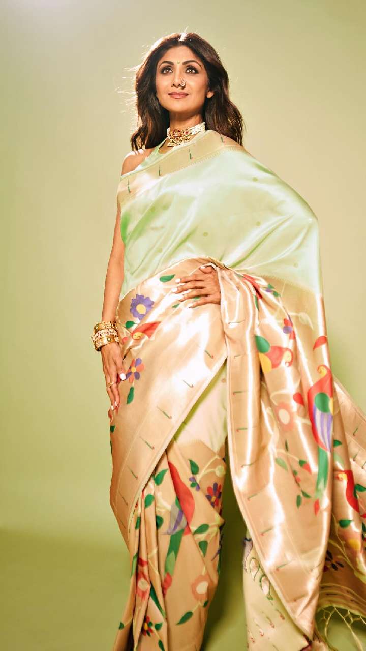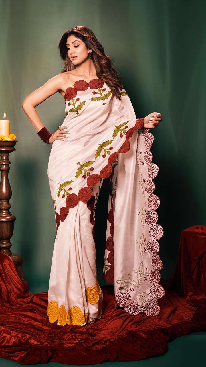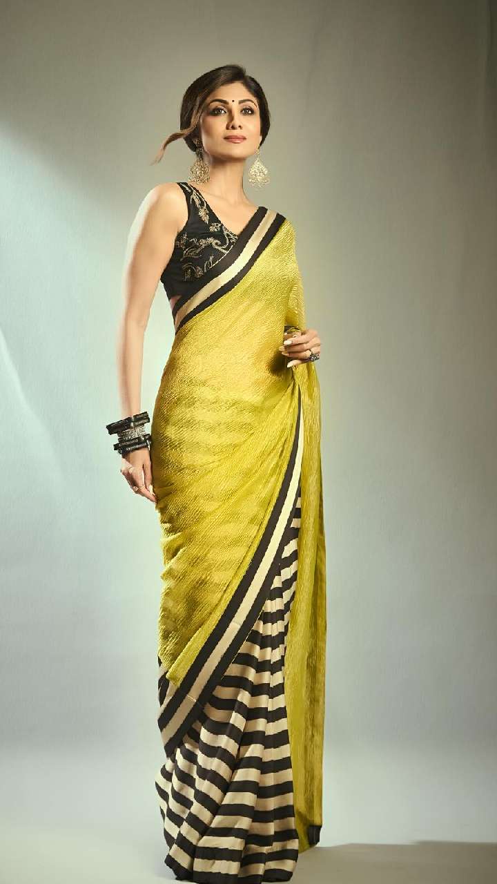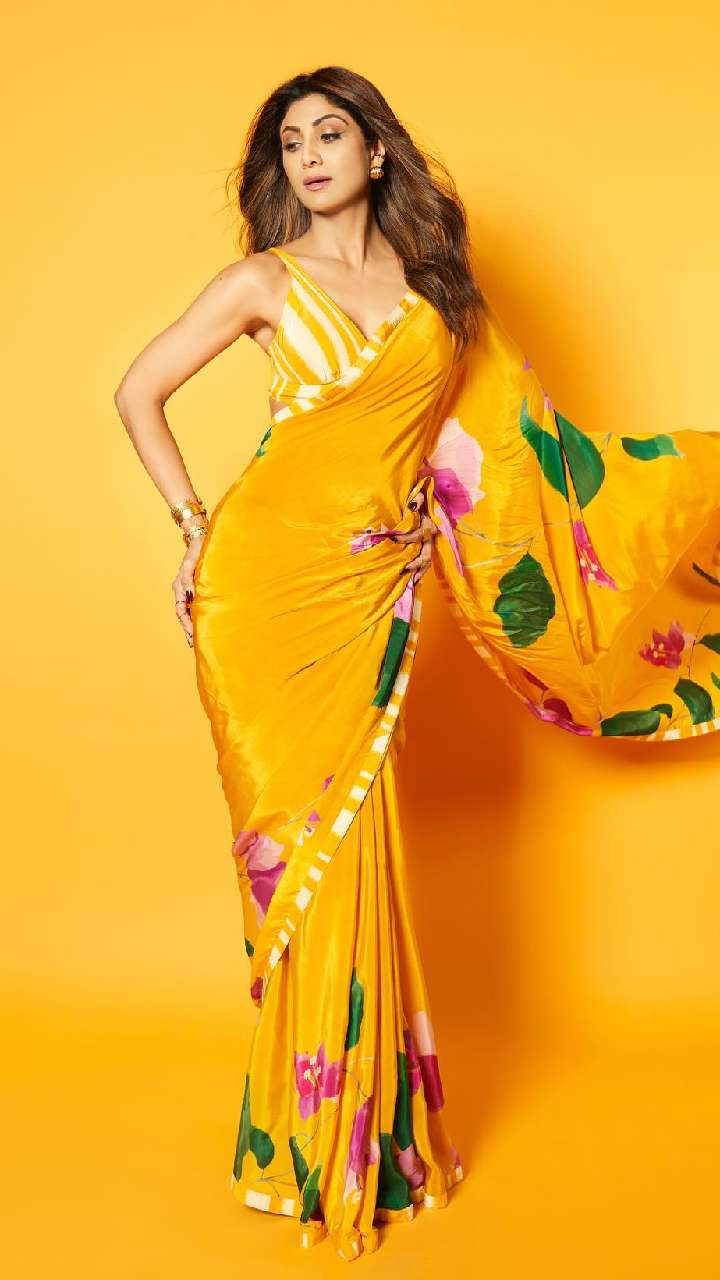 समर सीजन के लिए शिल्पा की प्लेन साटन साड़ी नूडल स्ट्रैप ब्लाउज बेस्ट रहेगी। ये स्लिम गर्ल्स को बेहद हॉट लुक देगी।